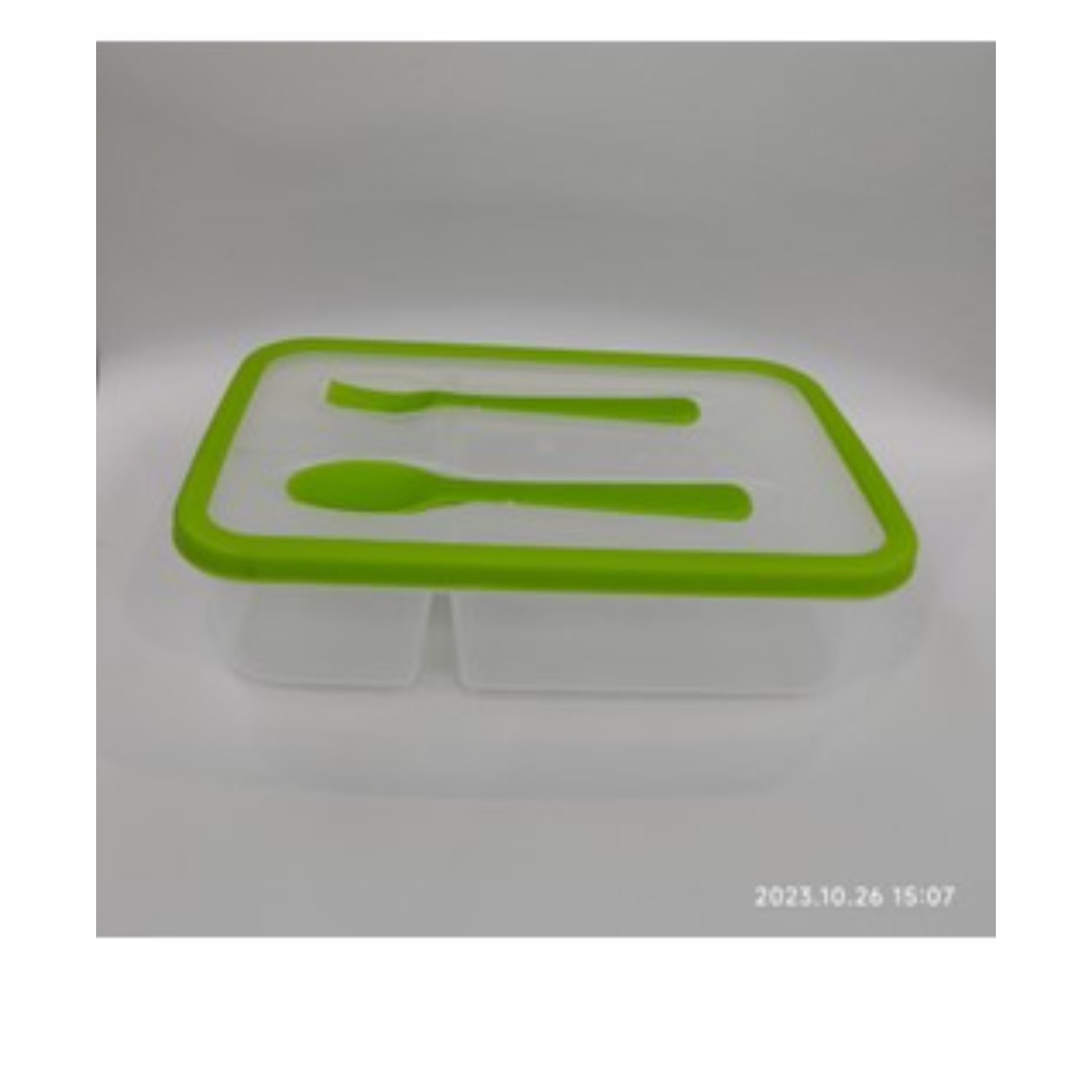 Divided Lunch Box With Spoon And Sauce Cup